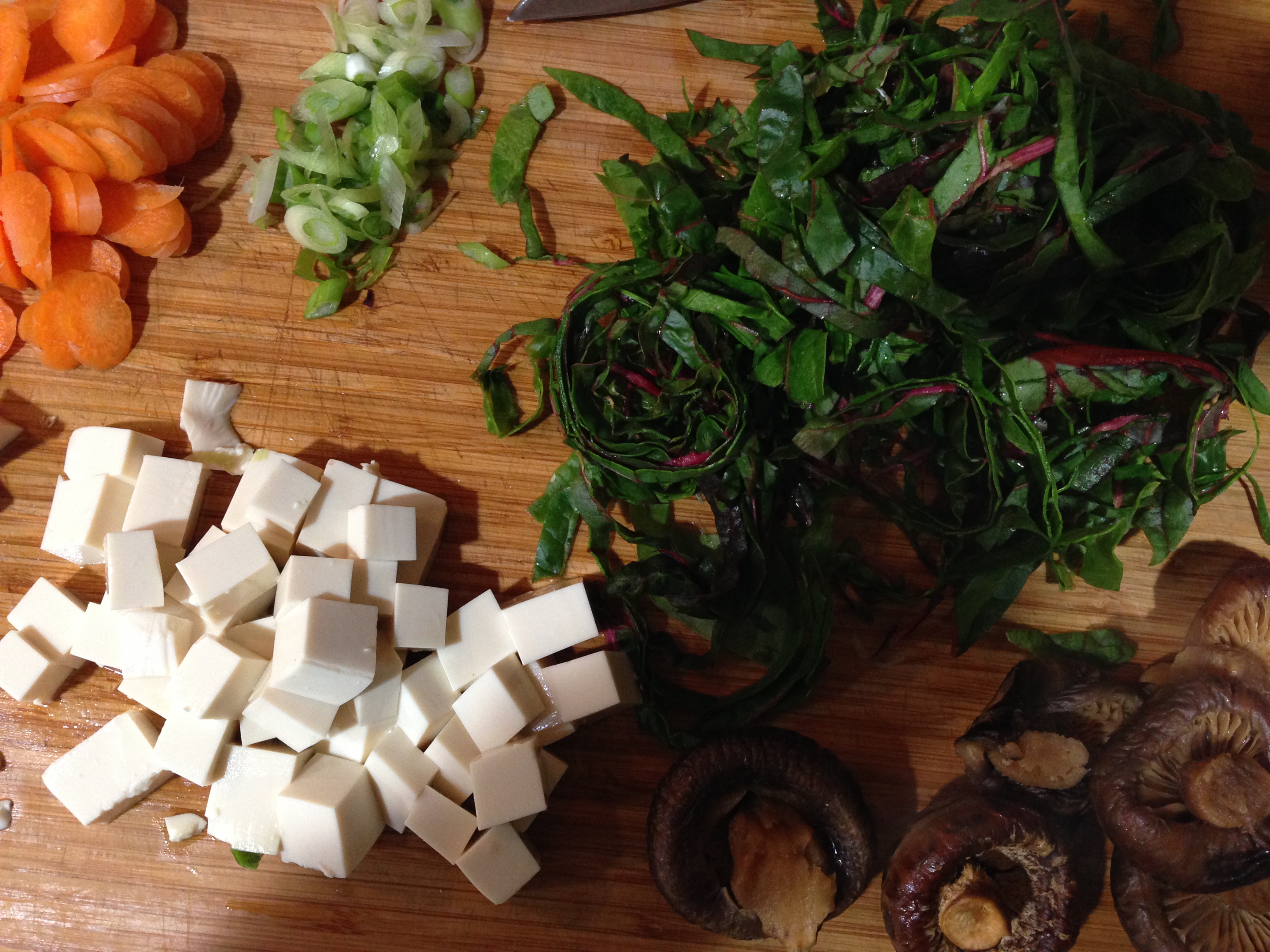 pulled from the garden here in Flagstaff. Yesterday I was lucky enough to spend the day in the Grand Canyon with friends on the Tanner Trail. So much fun, but after leaving most of the running to Rob lately I found myself still exhausted today! Sunday has turned into a lazy day and I put together this easy soup for dinner with enough leftover for lunch tomorrow. This is loosely adapted from a recipe from Deborah Madison’s Vegetarian Cooking for Everyone and inspired by some wonderful ingredients from a recent house guest from Japan.