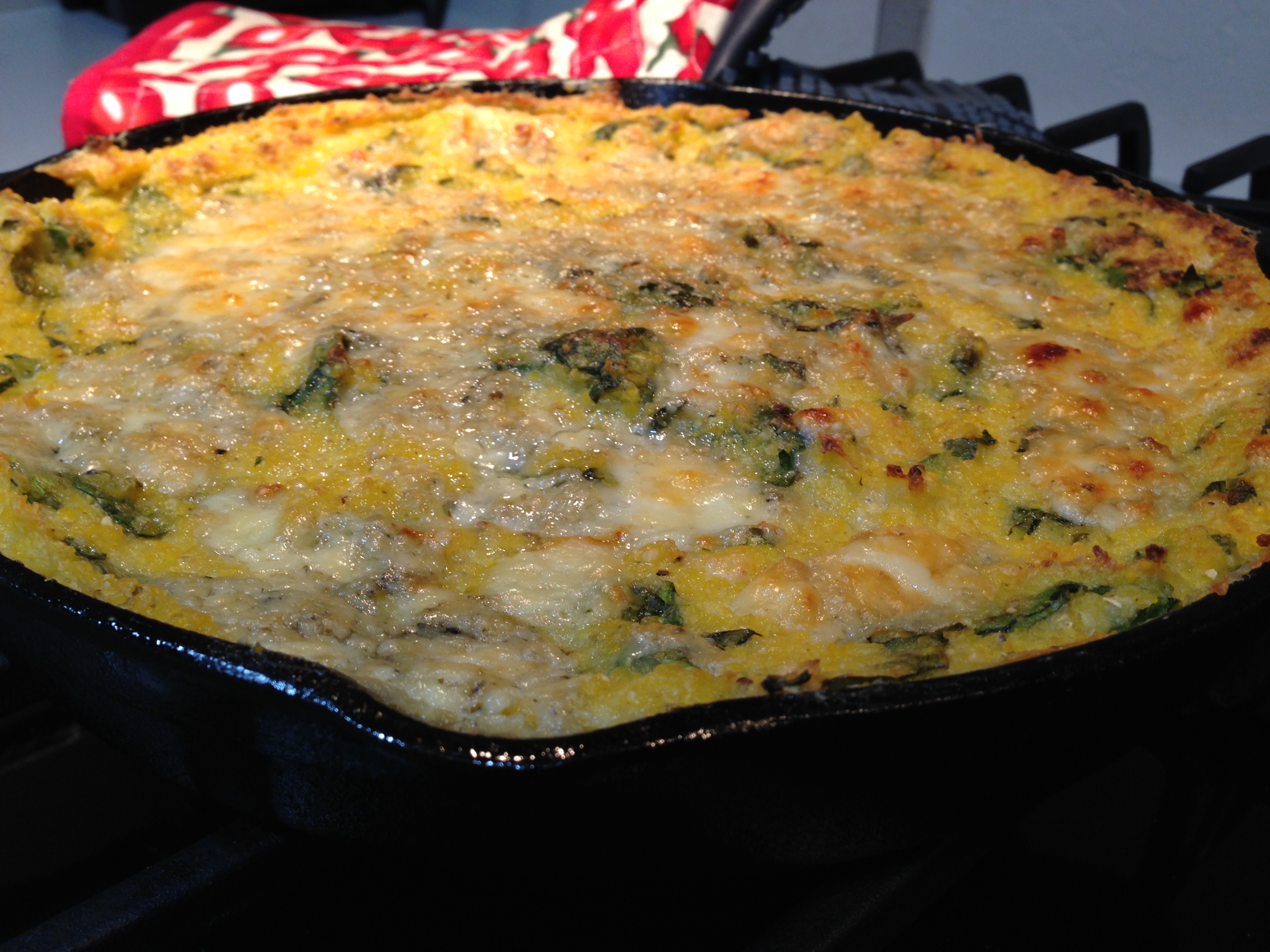 - Bake for about a half an hour until cheese is melted and polenta is browned on top