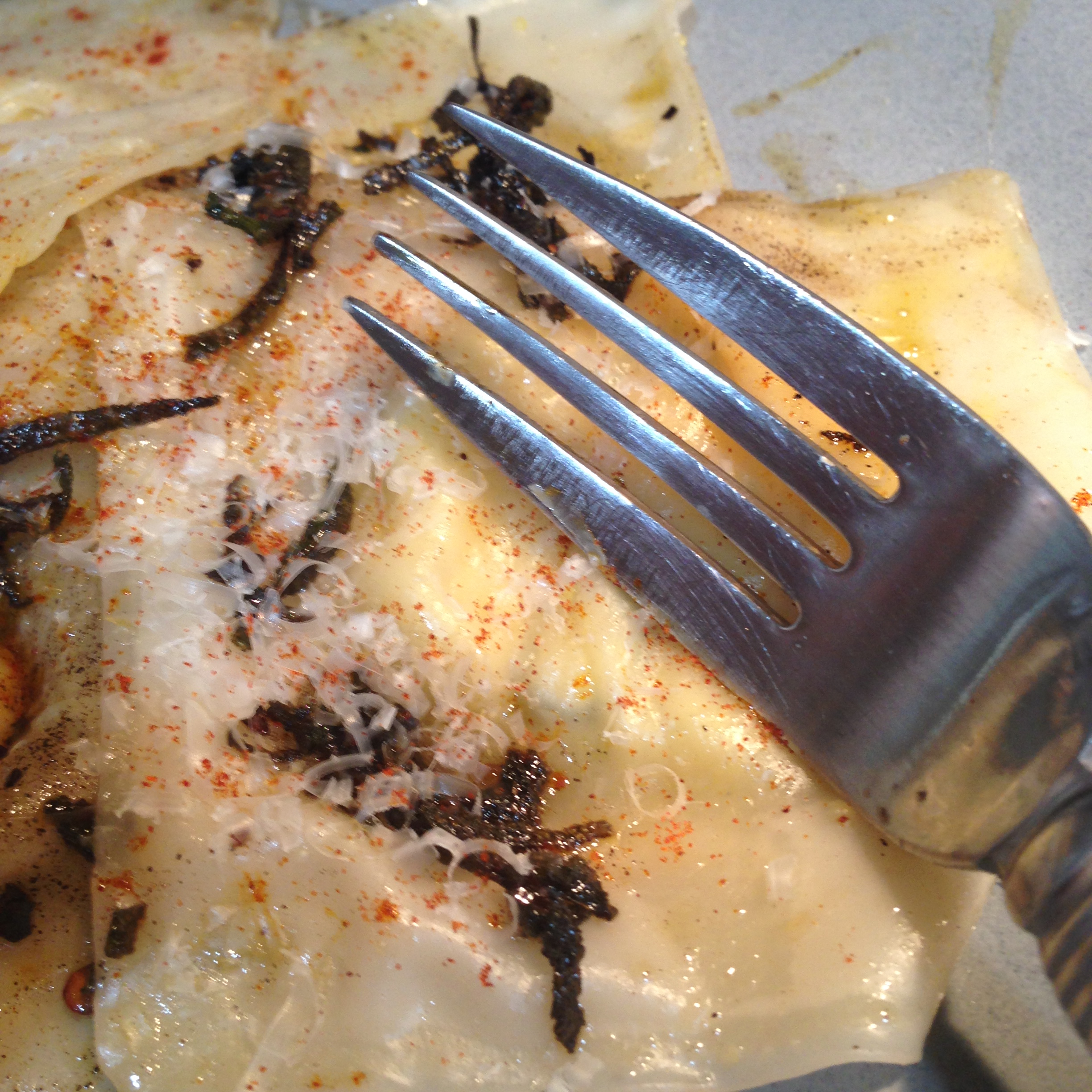 Using wonton wrappers is quick and easy – someday I will buy the pasta attachment for my Kitchen Aid mixer and go to town, but until then this is a great way to eat homemade ravioli anytime!