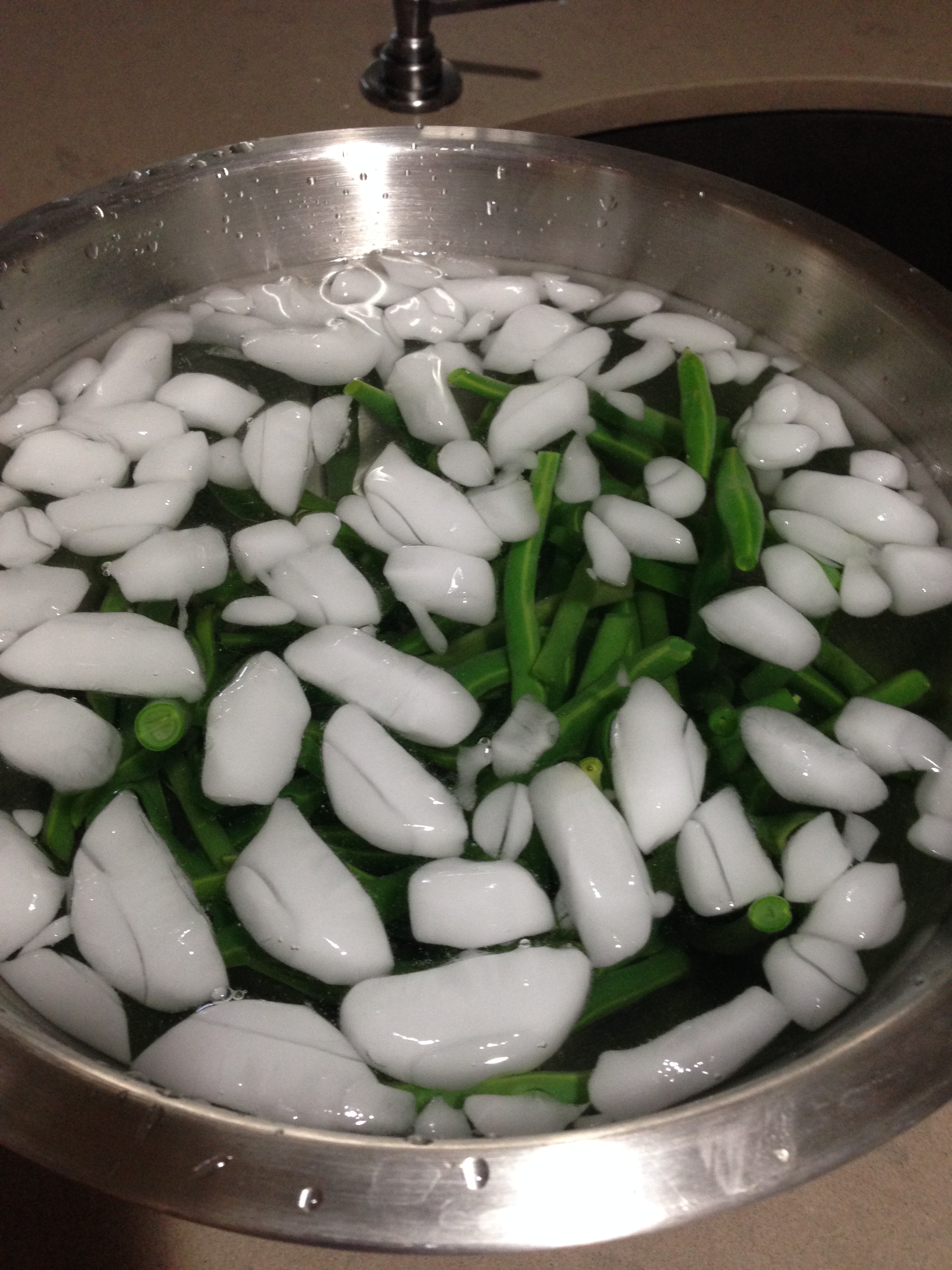 - Immediately plunge the green beans into a bowl of ice and cold water ( this will keep that beautiful color!)