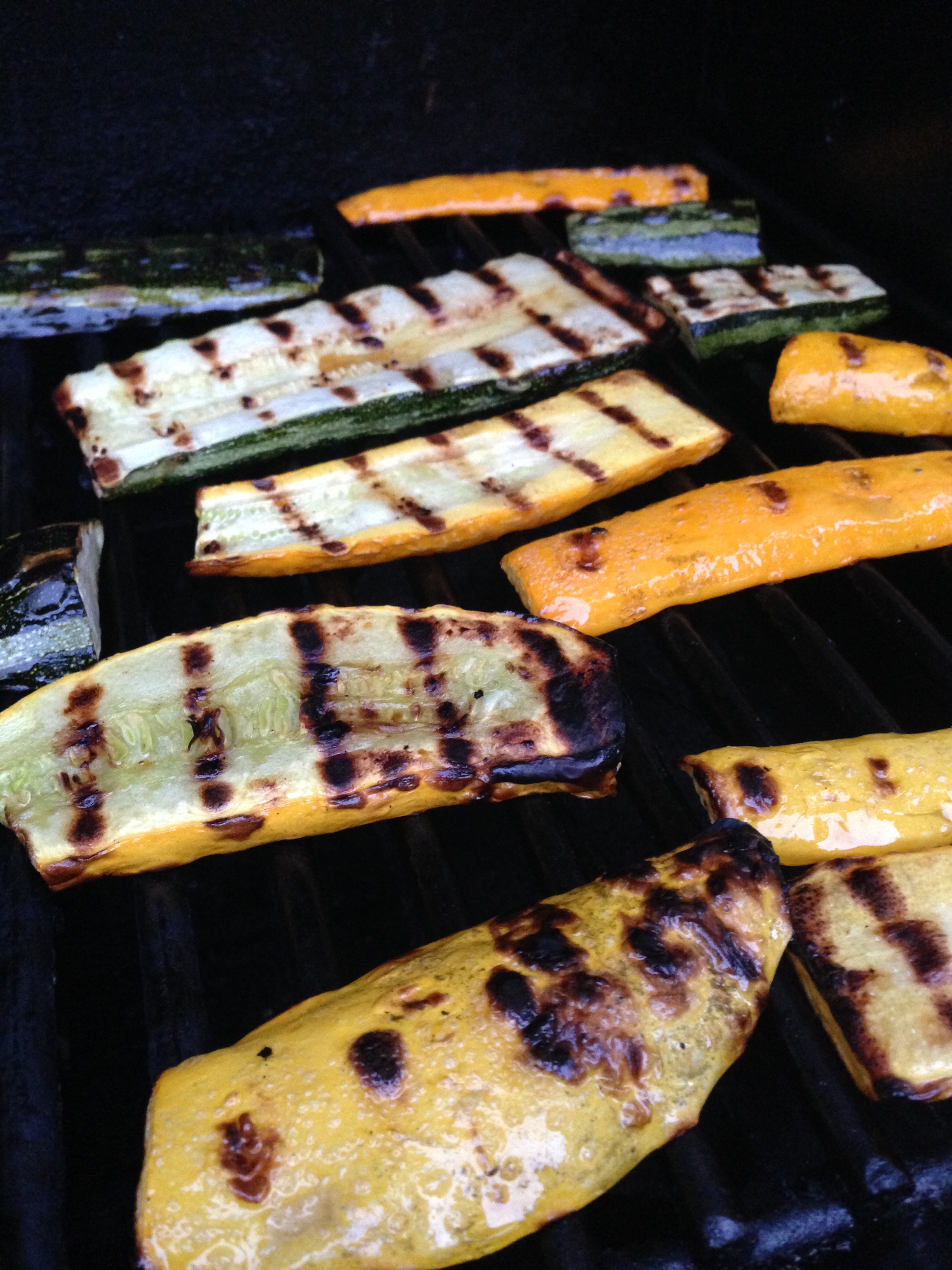 - 4 medium or 6 small summer squash sliced into planks (we used crookneck, yellow zucchini and an heirloom striped zucchini)