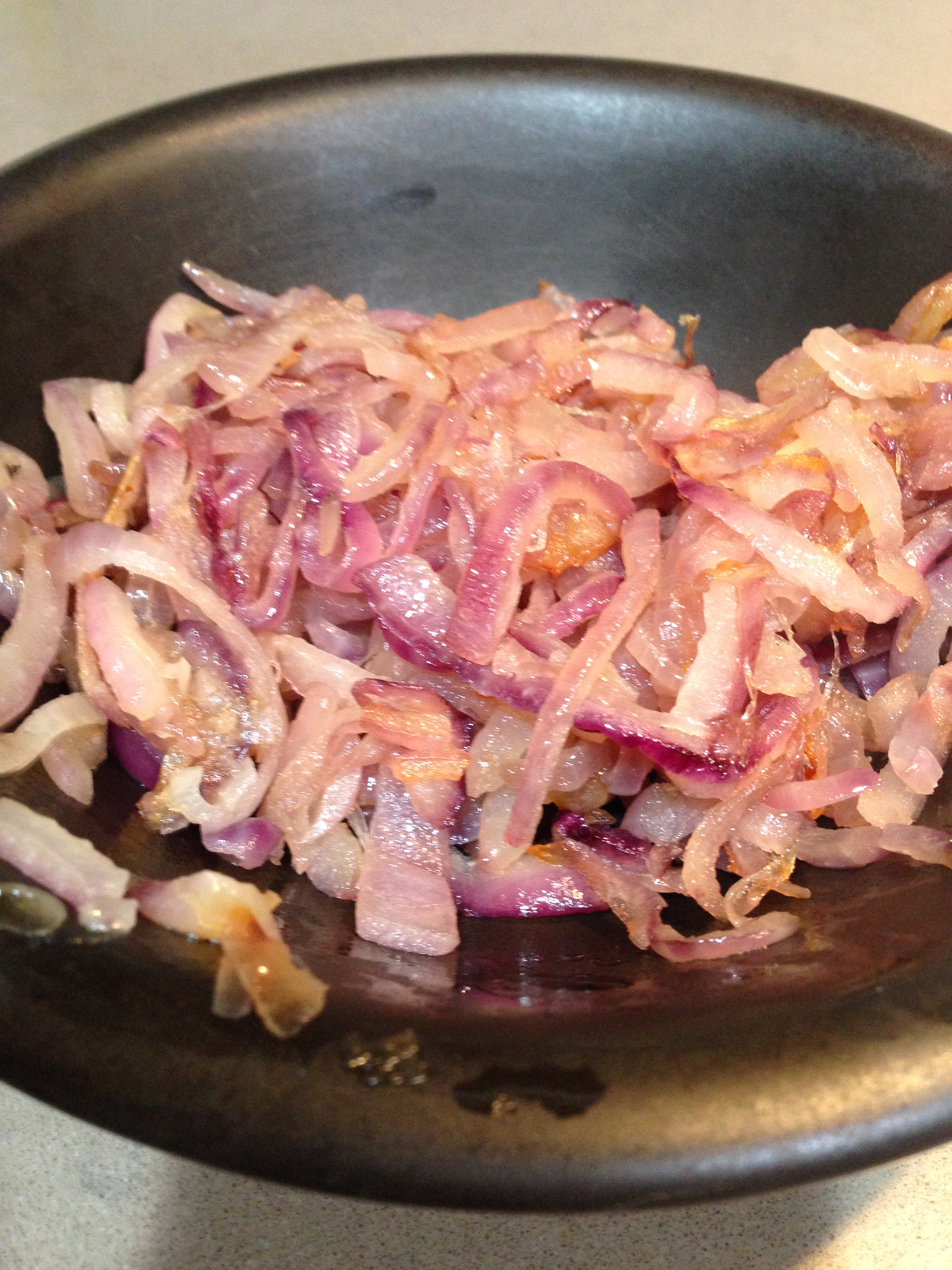 - Heat 2 tablespoons oil in a medium fry pan, add sliced onion saute until soft and