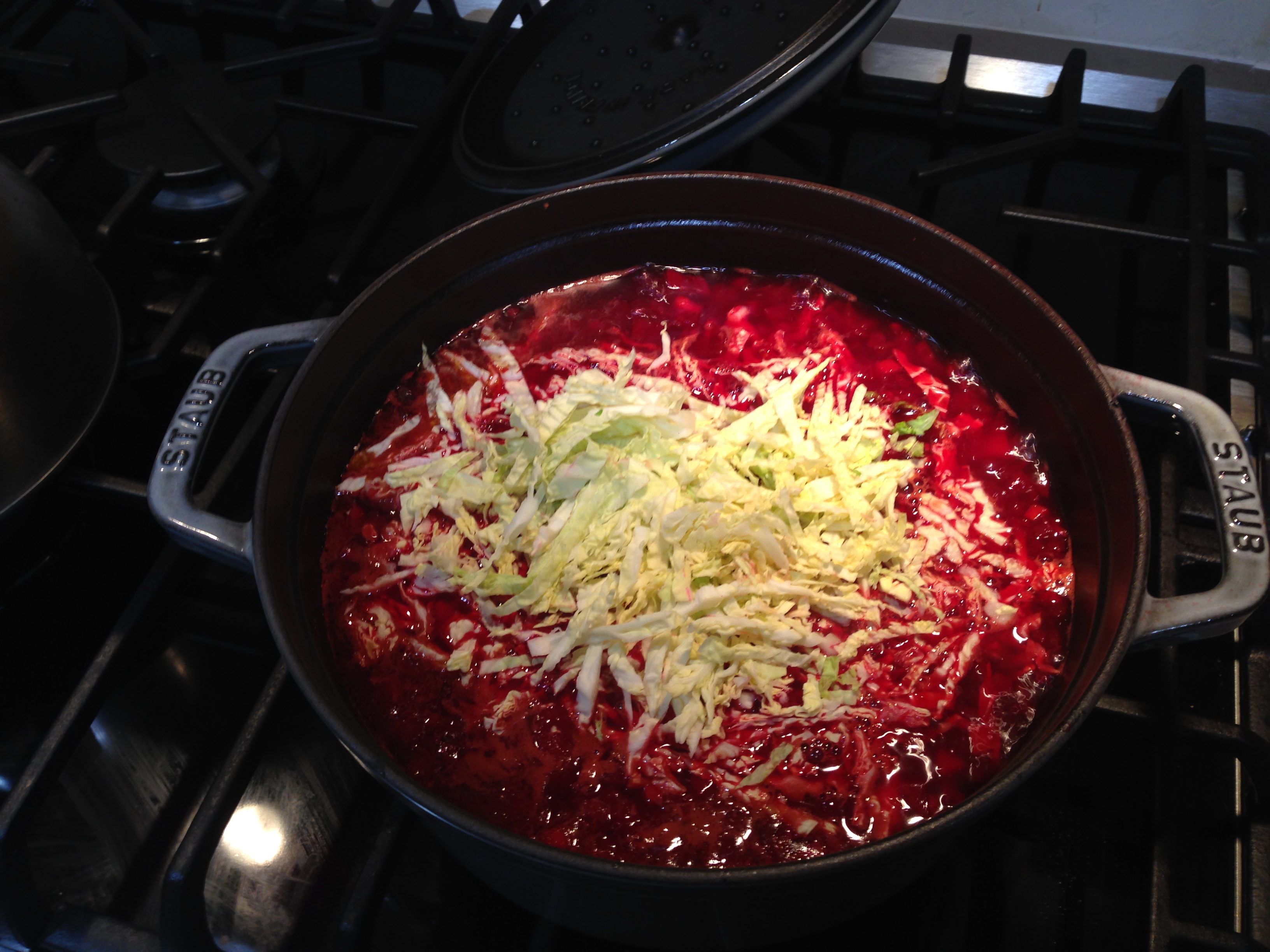 When I think of beets I also think of Borscht. I have never made this iconic soup and I wanted to try my hand at it. I lived in the former Soviet Union for two years when I was small and while I don’t remember eating this red soup I do remember the brown bread and pickles. Sometimes when we traveled that is all I ate. Somehow even without having eaten this soup it still brings memories of my childhood.